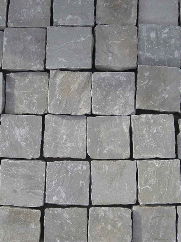 Kandla Grey Sandstone cobbles is a hand chiseled block paving’s that tapers from top towards bottom surface which provides perfect setting. Available in wide range of size and thickness, they can b…