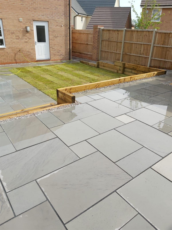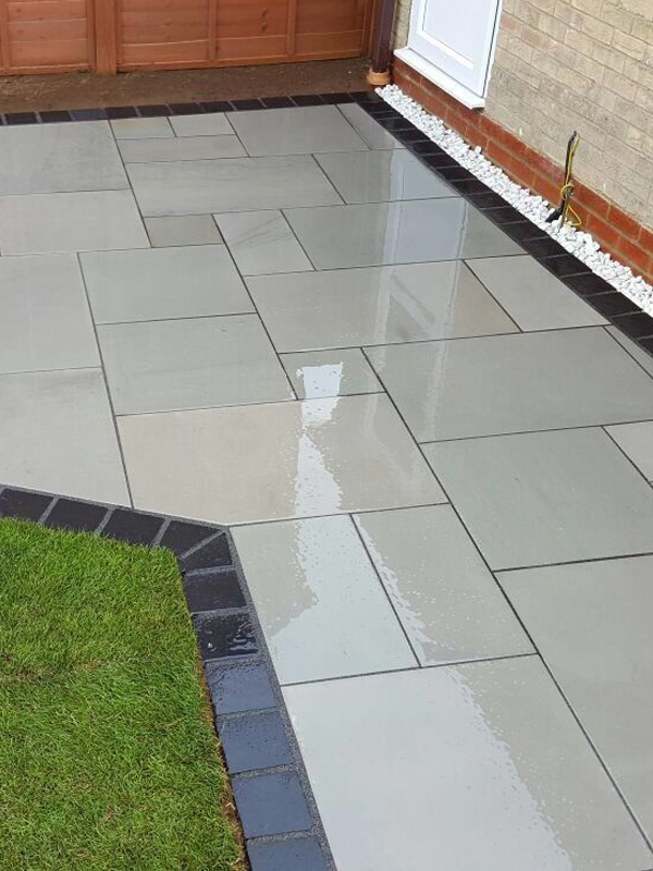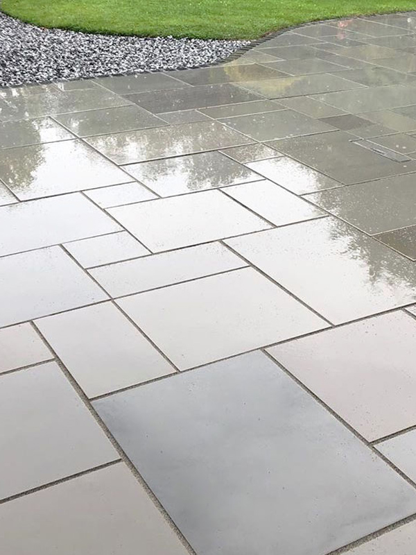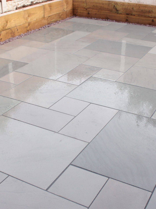 Kandla Grey Sawn Sandstone is sawn straight off the block and cut down to size. The top surface of each slab is honed, creating a smooth finish with a slight sheen and all 4 edges are machine-cut w…