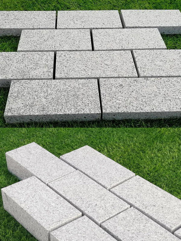 Silver grey Granite Flammed Setts are directly imported from China which are cut by Machine & Top is flammed.When dry the product is more of a Lighter shade but when wet it gives you a grey lo…